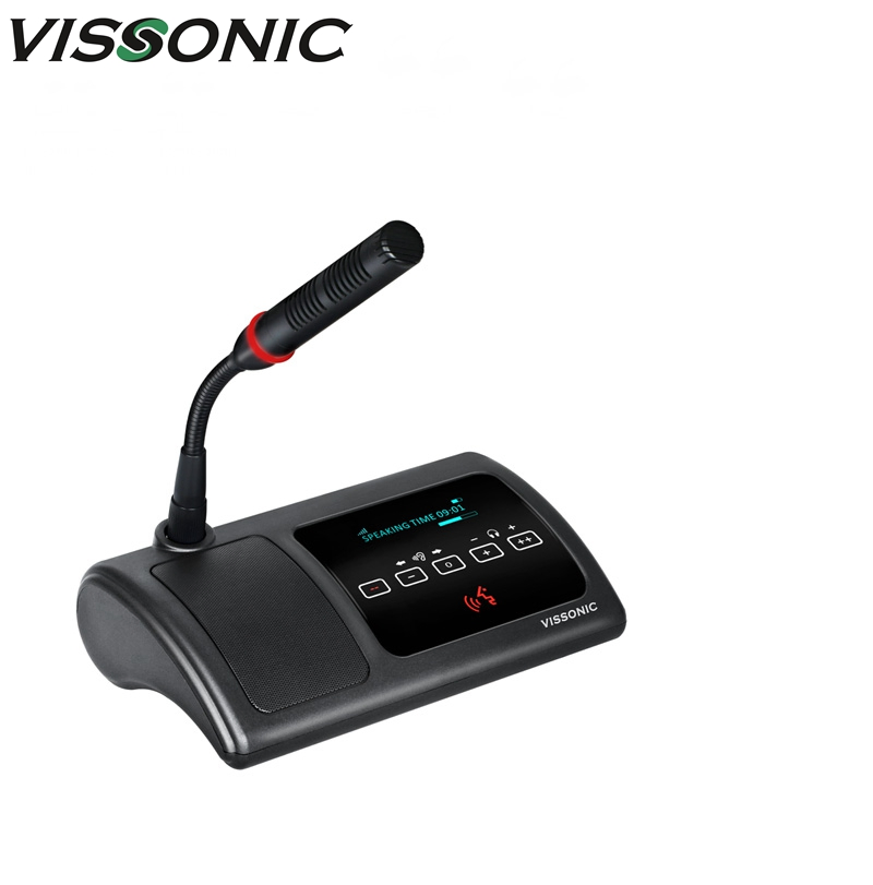 - The unit showing time/date on the screen. Timer on display to set certain time for each delegate to speak, will remind user or close the MIC automatically.
