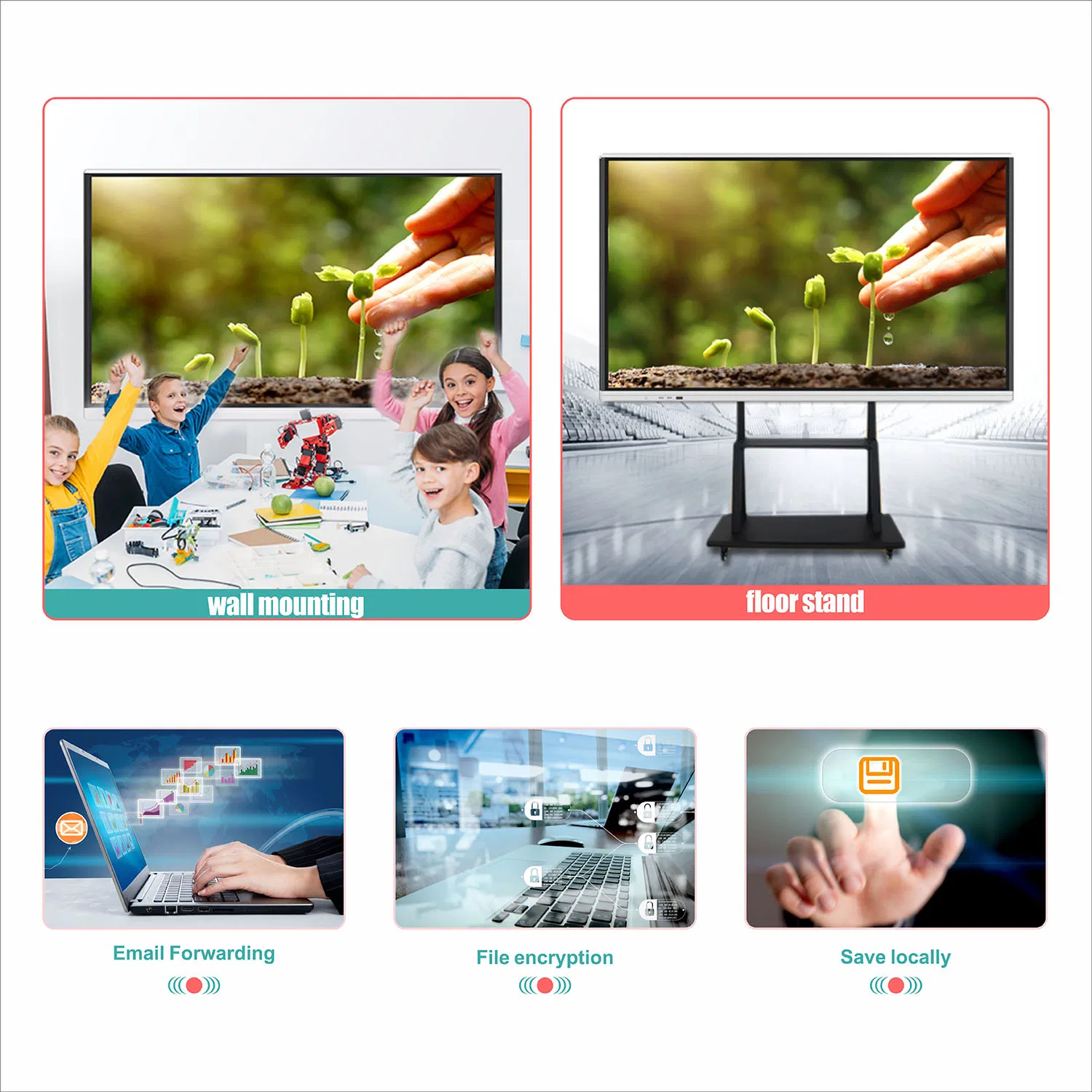 6,Dual core processor : windows and android dual system built-in design. Both systems can achieve whiteboard writing and multimedia playing.